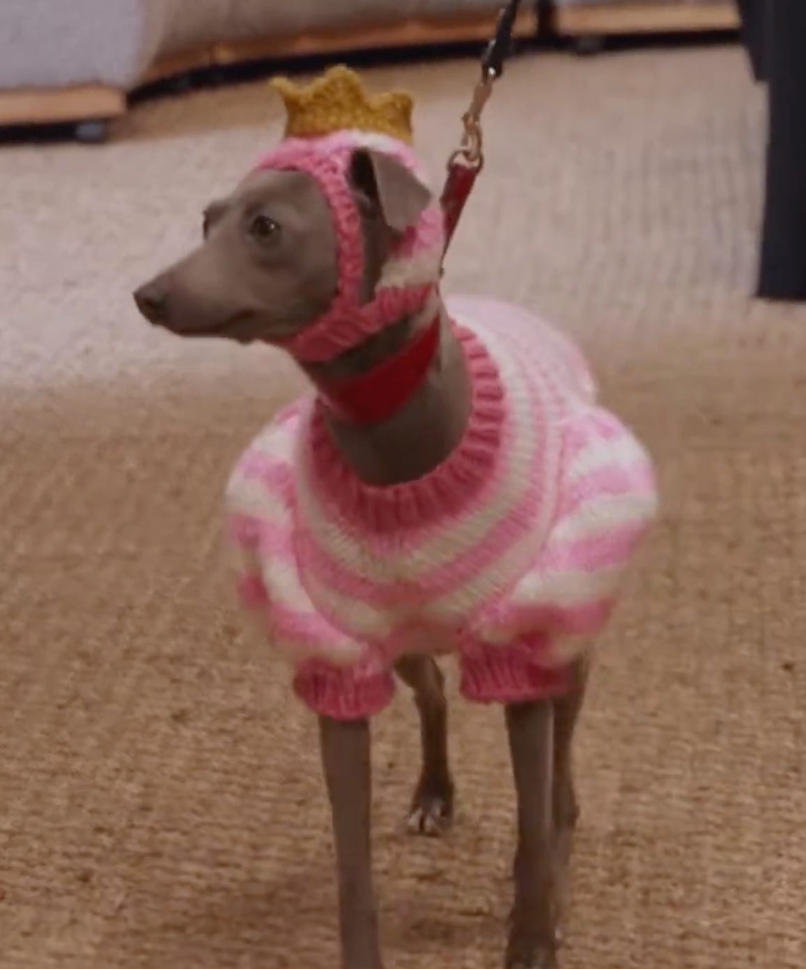 The solo challenge required contestants to create a two-piece outfit for an Italian Greyhound. The garment required both creativity and structural integrity; using both knitting and crochet. The contestants had 12 hours.