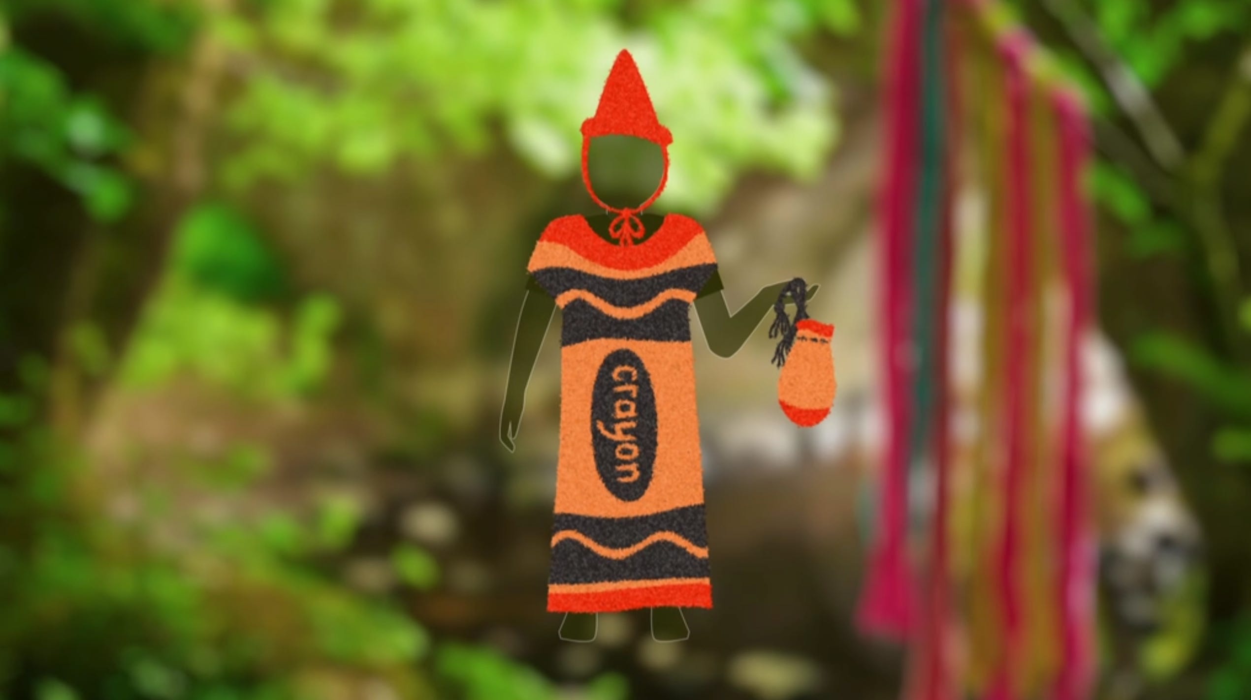 Dipti turns a child into a walking crayon using basic double crochet and ambitious intarsia lettering, plus a crayon-tip hat and matching crayon bag.