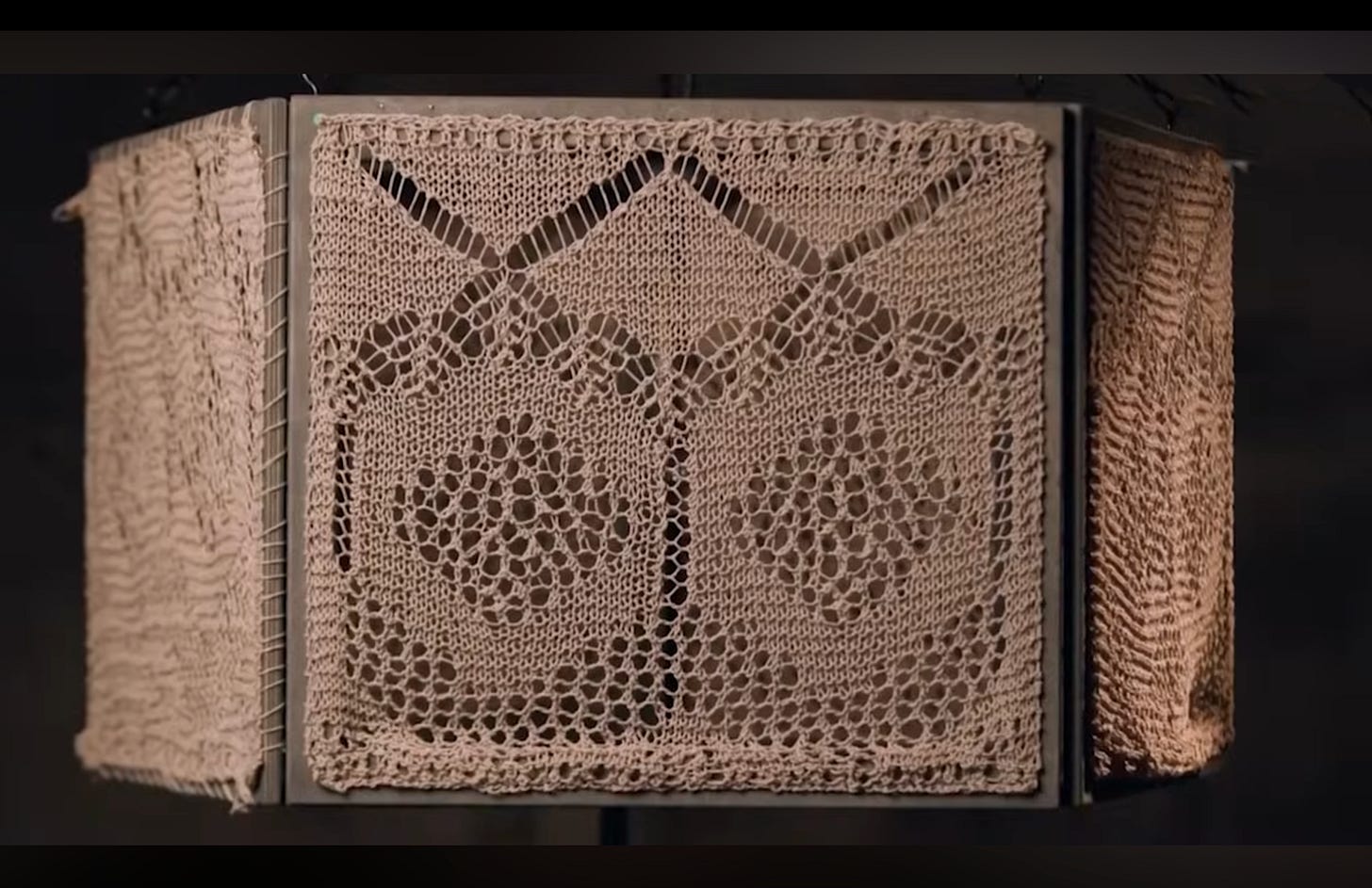 The knitters must collaborate on a lace-knit lighting installation, each producing one lace panel of a Shetland “pineapple” motif. Lace proves punishing—dropped stitches, miscounts, the need for lifelines inserted into the knitting, varying tools, and emotional stress dominate the room. And after the judging, the winner, “I like clear instructions…“, surprises everyone with their extraordinary precision.