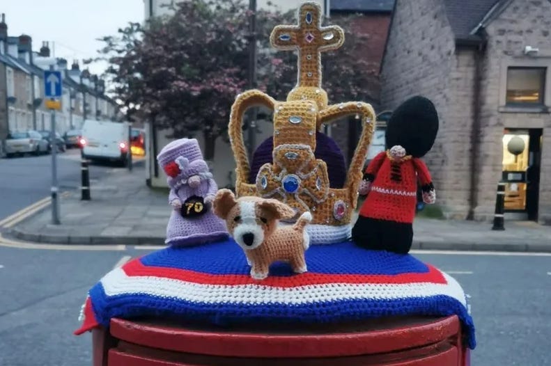 Postbox toppers are such a quintessentially British thing that, quite frankly, when they announced the challenge I got a bit excited! And while I realize it is just an exercise in Yarn Bombing; honestly, I’m jealous of the fact that we don’t have a post box we can top here in the states. If you want to learn more about Postbox toppers, here’s a great article about the trend from the BBC.