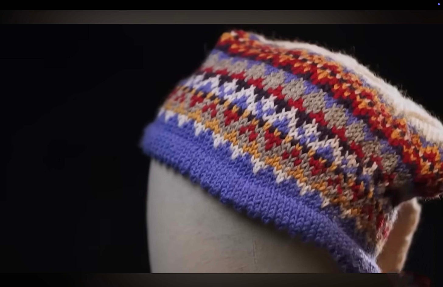 Holger highly engineers a long-pointed stocking cap inspired by his German heritage, featuring a picot edge, a returning Fair Isle motif, and finishing with a tassel.