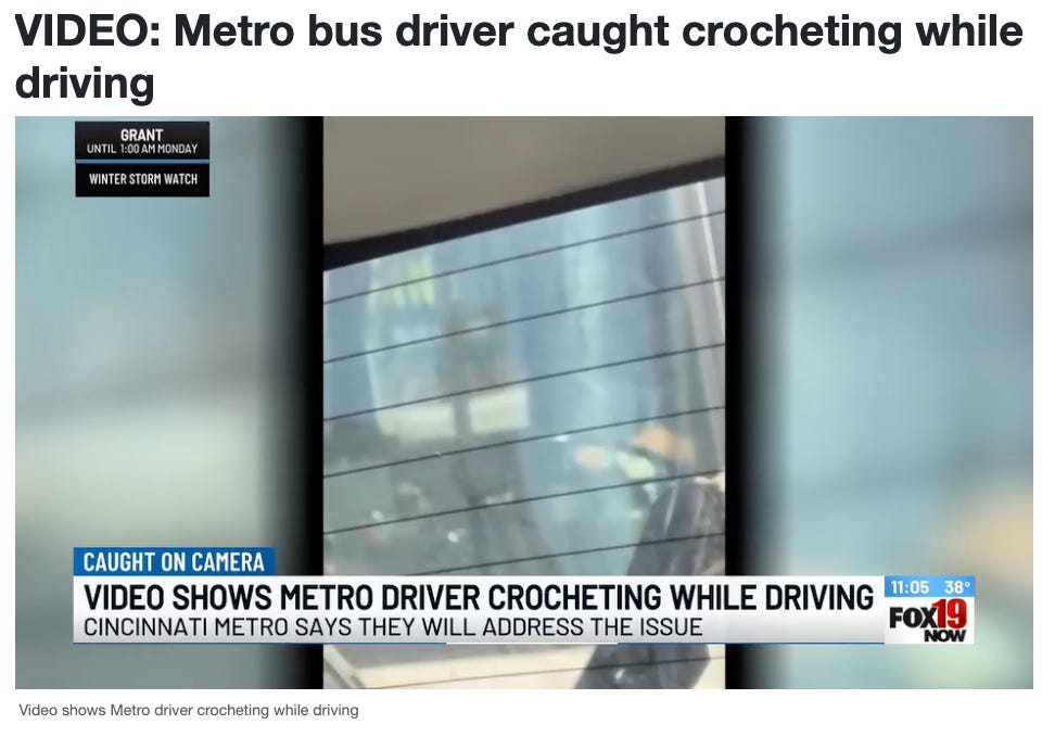 VIDEO: Metro bus driver caught crocheting while driving - FOX19