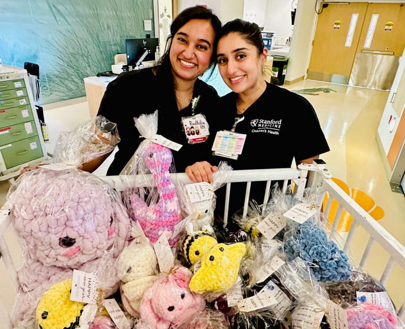 NICU nurses at Lucile Packard Children’s Hospital Stanford crocheted nearly 50 stuffed animals to give to tiny patients and their families.