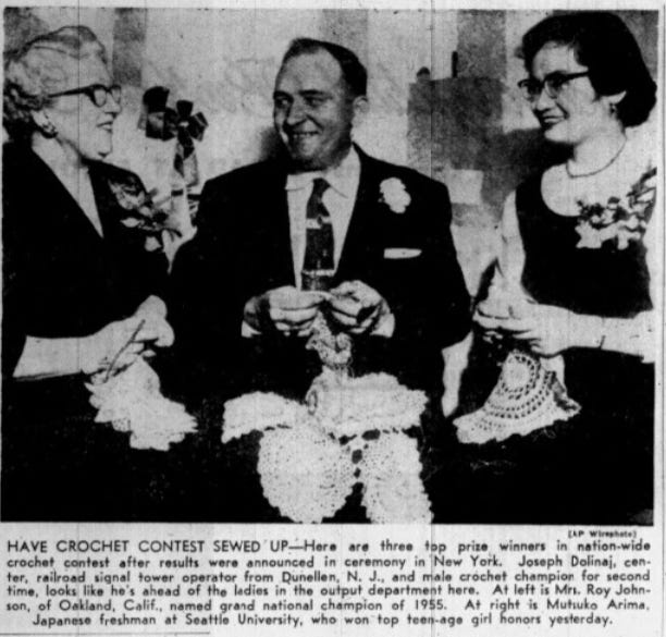 National contests - The 1955 National Crochet Contest sponsored by the Dritz company (see archival video here)